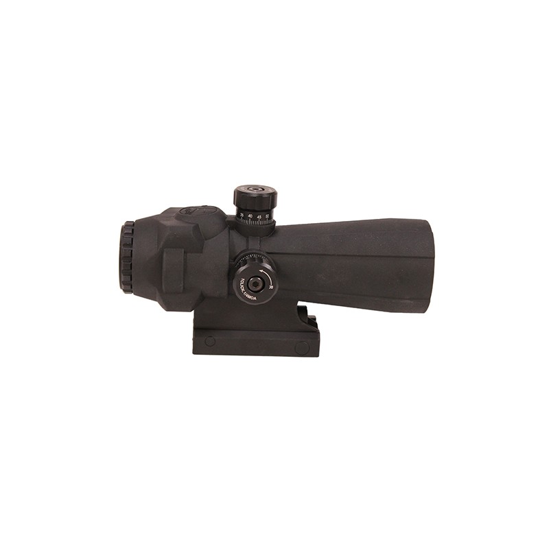 The 5x40 AR-X PRO Prism Scope by Barska is an innovative prism scope that was designed for law enforcement and military applications. A tough rubber armor exterior helps protect the AR-X PRO from shock and external damage while it is designed Illuminated Cross Dot Reticle allows for quick pin-point targeting. The color and brightness of the Cross Dot Reticle can be easily changed using a push-button design, allow the user to quickly adapt to the current lighting environment. The 5x40 AR-X PRO also features external 1/4 MOA windage and elevation knobs that can be returned to zero.
