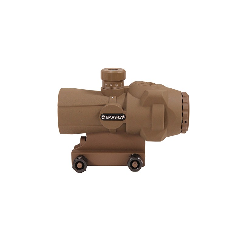 The 3x30 AR-X PRO Prism Scope (Flat Dark Earth) by Barska is an innovative prism scope that was designed for law enforcement and military applications. A tough rubber armor exterior helps protect the AR-X PRO from shock and external damage while a newly designed Illuminated Cross Dot Reticle allows for quick pin-point targeting. The color and brightness of the Cross Dot Reticle can be easily changed using a push-button design, allow the user to quickly adapt to the current lighting environment. The 3x30 AR-X PRO also features external 1/4 MOA windage and elevation knobs that can be returned to zero.