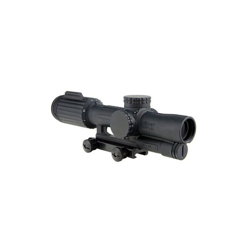 The Trijicon VCOG (Variable Combat Optical Gunsight) is a highly rugged, variable magnification riflescope designed for close quarter battle (CQB) and long distance marksmanship. With a forged aircraft-grade 7075-T6 aluminum housing, the VCOG is nearly indestructible. Superior glass provides exceptional clarity and color with zero distortion. The universal segmented circle/Mil reticle is designed for multi-platform use, accommodating multiple calibers, ammunition weights, and barrel lengths. The first focal plane reticle allows subtensions and drops to remain true at any magnification, allowing the shooter to quickly and accurately apply the correct hold. With ruggedized electronics, the LED reticle is robust enough for any application. Powered by a lithium AA battery (provided), it has 6 user-selectable brightness settings. The green LED boasts a battery life of 1,400 hours at setting 4 (constant on); the red LED has a 700 hour battery life. An integrated dial fin allows easy rotation through the magnification range, and a constant eye relief means no head or stock position adjustments are needed. Waterproof to 20 meters (66 feet).