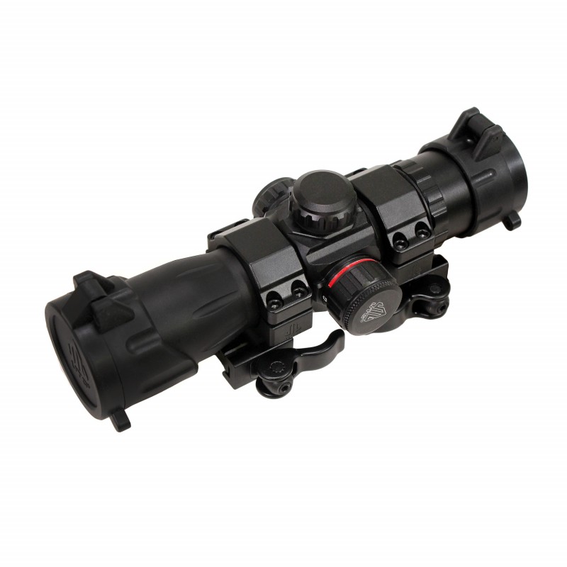 - Intuitive Quick to Acquire Red/Green T-Dot Reticle for Swift Execution of T-Zone and Center Mass Hits with Fine Adjustment Rheostat for Variable Intensity Adjustment