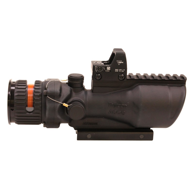 The militarys need for a magnified, self-luminous tactical sight that enhances target identification and increases hit probability on extended-range shots has given rise to the Trijicon ACOG 6x48. Powered by Trijicons patented fiber optics and tritium-based technology, the TA648-D-100559 reticle features a red chevron aiming point. It also incorporates a bullet drop compensator (BDC) with additional aiming points estimated for trajectory of the 5.56mm M855 out to 800 meters. To further improve target acquisition and hit potential, the ACOG 6x48 incorporates Trijicons Bindon Aiming Concept (BAC) a revolutionary both-eyes-open method of aiming. Like other members of the Trijicon ACOG line, the ACOG 6x48 is battery free and waterproof to 500'. This model of the 6x48 ACOG features an 6.5 MOA RMR Type 2