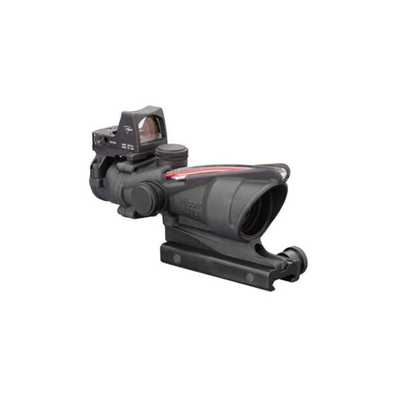 Adapted from the battlefields, US Forces have begun improving this proven Trijicon ACOG scope by adding a small red dot sight on top for close encounter missions. Trijicon has now created a similar model for the public, the TA31-C-100550. The main Trijicon scope provides a dual-illuminated reticle using fiber optics and tritium for bright aiming point in any light condition. The ranging reticle allows for bullet drop compensation out to 600 meters without any manual adjustments. A Trijicon RMR Type 2 sits on top with a 3.25 MOA aiming dot.