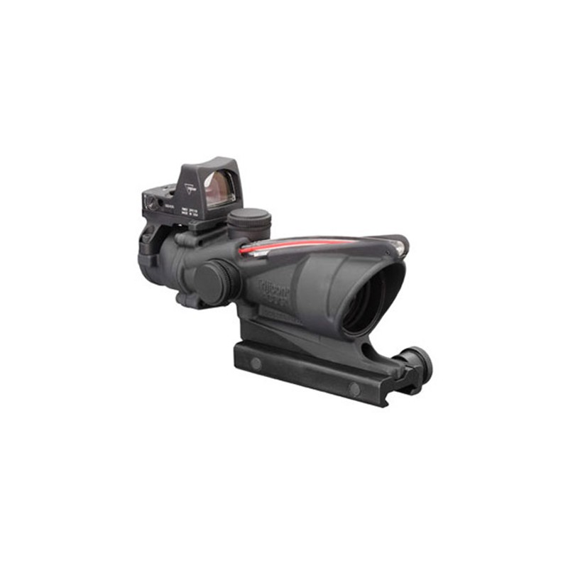 Adapted from the battlefields, US Forces have begun improving this proven Trijicon ACOG scope by adding a small red dot sight on top for close encounter missions. Trijicon has now created a similar model for the public, the TA31-D-100549. The main Trijicon scope provides a dual-illuminated reticle using fiber optics and tritium for bright aiming point in any light condition. The ranging reticle allows for bullet drop compensation out to 800 meters without any manual adjustments. A Trijicon RMR Type 2 sits on top with a 3.25 MOA aiming dot.