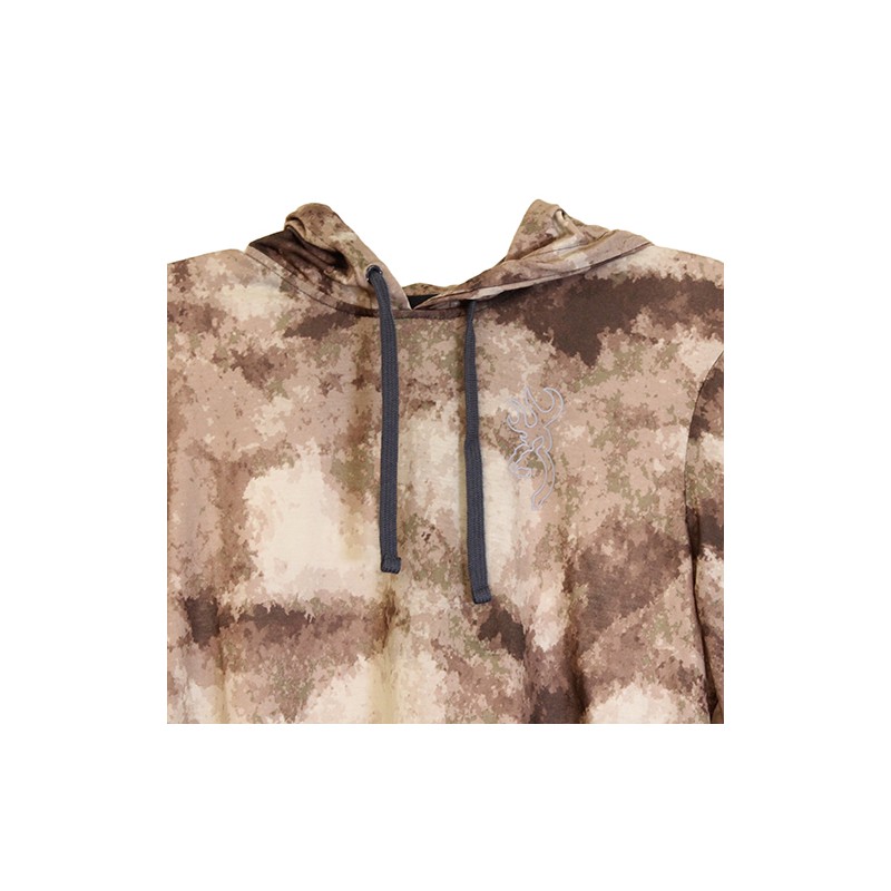 A hoodie for warm weather. Your long sleeve hunting T-shirt just got a little bit better with an attached hood to give you near full camo concealment on the stalk or in a blind. This fully synthetic tee is stretchy, durable, moisture-wicking and anti-microbial.
