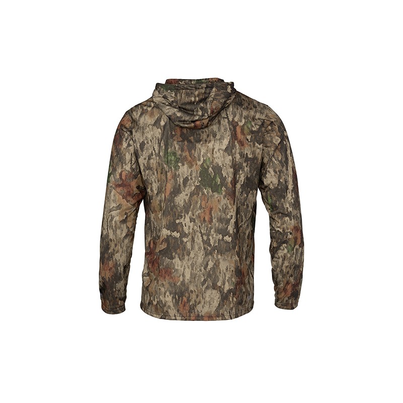A hoodie for warm weather. Your long sleeve hunting T-shirt just got a little bit better with an attached hood to give you near full camo concealment on the stalk or in a blind. This fully synthetic tee is stretchy, durable, moisture-wicking and anti-microbial.