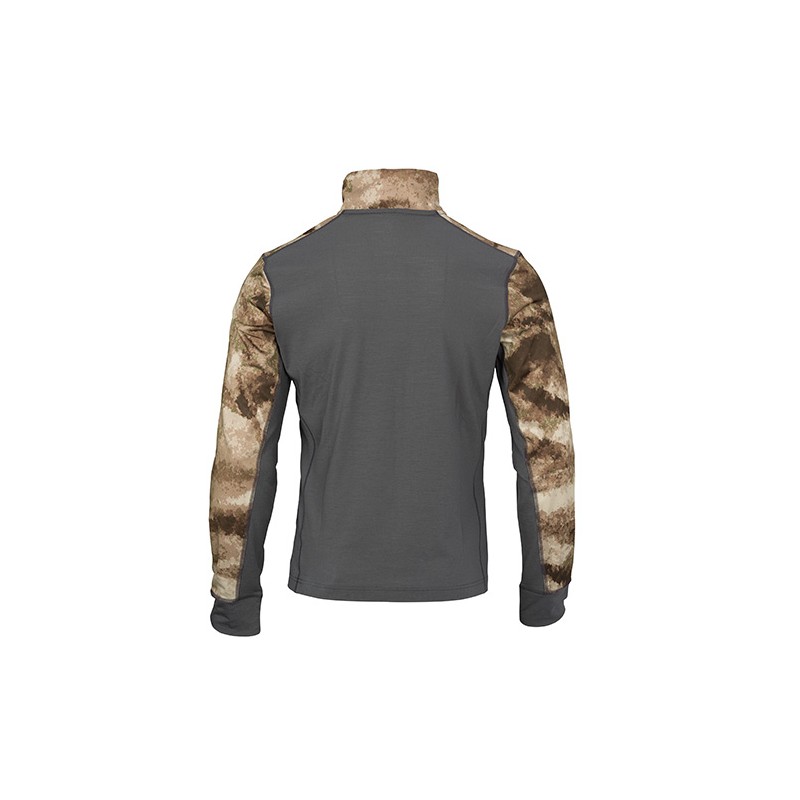Extreme moisture-wicking shirt with itch-free Merino wool blend trunk and underarms, A-TACS camo for superior concealment.