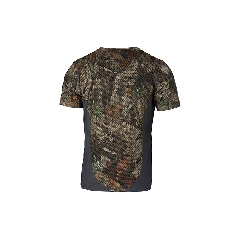 Technical hunting shirts with polyester/mesh fabric hybrid construction, integrated mesh underarm panels, exclusive A-TACS camo patterns.