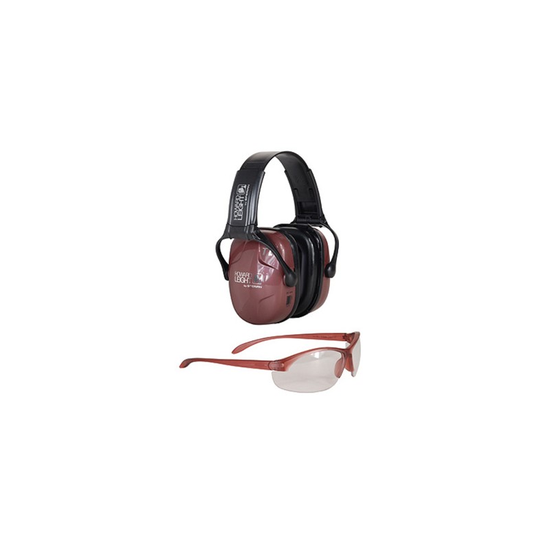 Woman's Combo Shooting Kit includes one dusty rose earmuff and one pair of anti-fog eyewear with clear lenses and a dusty rose frame. Shooting glasses are specially designed to fit smaller head and face sizes, have anti-fog lens coating, durable polycarbonate clear tint lens and a dusty rose frame. Meets ANSI Z87+ impact standards. Lightweight earmuff features an adjustable headband allowing a secure fit for virtually all head sizes and is a convenient folding design for easy storage. The ear cushions are soft providing comfort for long use due to patented Air Flow Control technology.