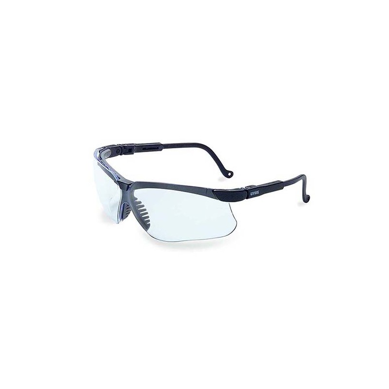 Genesis Shooter's Safety Eyewear, Black Frame, Clear Lens with HydroShield Anti-Fog lens. Howard Leight by Honeywell Genesis Sharp-Shooter Safety Eyewear is engineered for maximum comfort and protection. The Uvextreme anti-fog lens coating combines with a ventilation channel to minimize fog and moisture. The 9-base wraparound uni-lens style gives this protective eyewear uncompromised peripheral vision. A soft, flexible browguard plus adjustable temples and nose piece provide maximum comfort and customization. These shooting glasses feature high-impact standards and 99.9% UV coverage to keep your eyes safe. The clear lens is suitable for shooting in most indoor and outdoor environments.