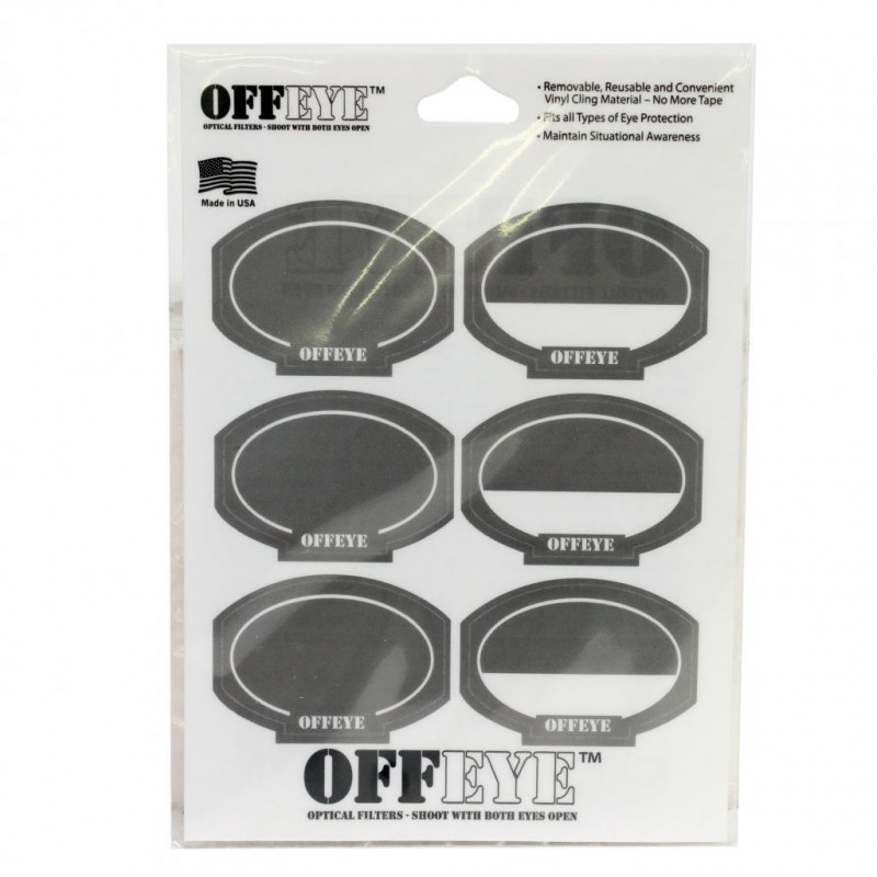 Rarely do advanced shooters shoot with both eyes open. The advantage of both eyes open is 3-D depth preception, field of view and peripheral vision. Binocular vision gives us the ability to pick up on a moving target quicker and react more accurately and efficiently. For shotgun, rifle, handgun and archery. This patented product allows full-time use of a dominant aiming eye and allows the shooter to keep both eyes open. OffEye filters are the first shooting aid designed to not block your vision but to hone the way your eyes perceive the target.