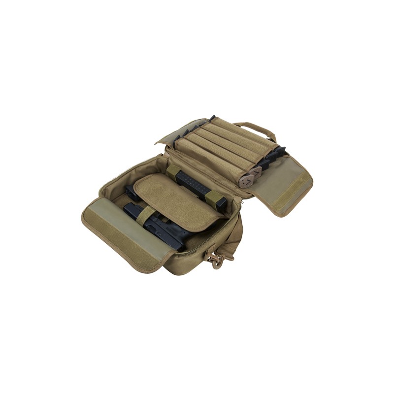 - Magazine pouches (9" Long) run nearly the full width of the Pistol Range Bag with hook & loop flaps on both ends. This allows you to use sub-compact, double stack standard capacity magazines, and even 30+ extended magazines. The mag pouches can hold up to ten standard capacity double stack magazines.