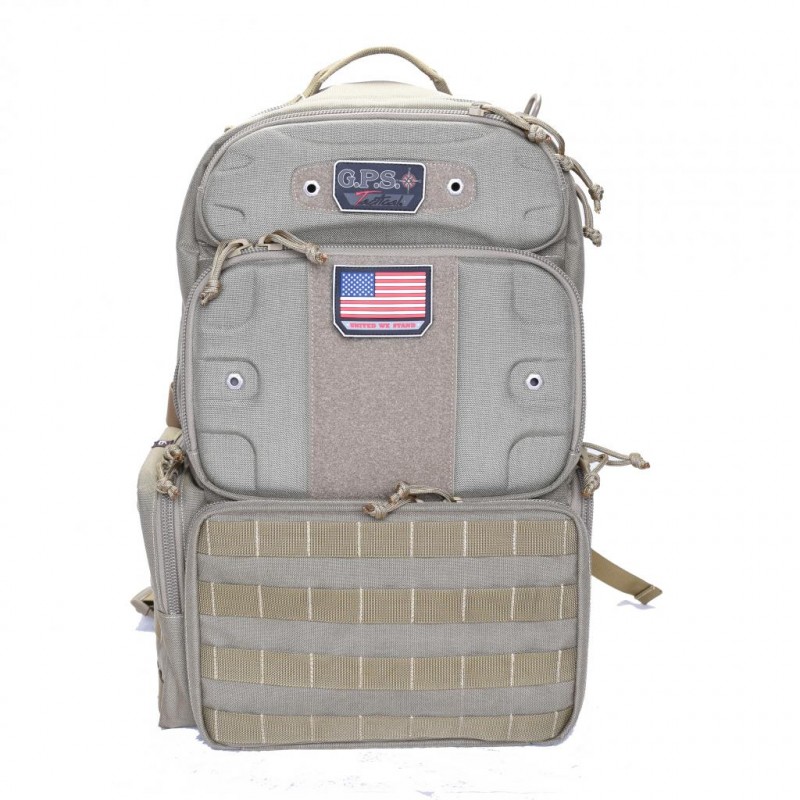 1000 Denier heavy duty material with DuPont Teflon coating. Features four padded internal handgun storage cases with magazine storage. Features eight outside zippered pockets for ammo and other accessories. Padded waist strap for load stability. Internal (Honey Comb) frame for rigidity of the pack. MOLLE webbing system that is triple stitched. Visual I.D. storage system. External bungee system for targets. Pull-out rain cover. YKK locking zipper for handgun compartment. Removable tactical logo or club placard.