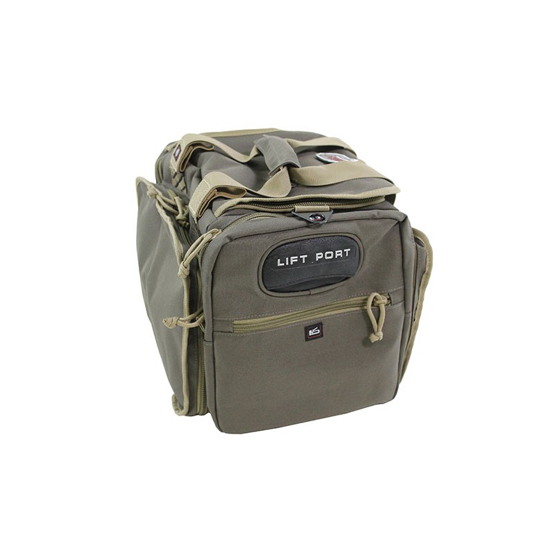 Visual I.D. Storage System helps the shooter quickly access shooting glasses, ear plugs, ear muffs, binoculars, shooting targets, tools, ammo dump cups (2), stapler, tape or cleaning supplies. Lift ports are on each end of the bag for easy maneuvering with 2 hands. Padded walls and bottom for protection. Metal hardware on the shoulder strap. Large loop zipper pulls allow for a lock. Can store up to six handguns and ammo. Dimensions: 14x11x9 inches.