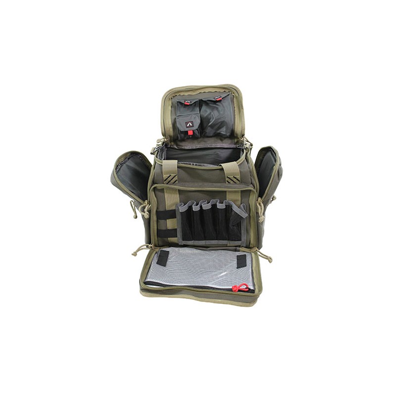 - Specialized pockets for shooting glasses, magazines, tools and more