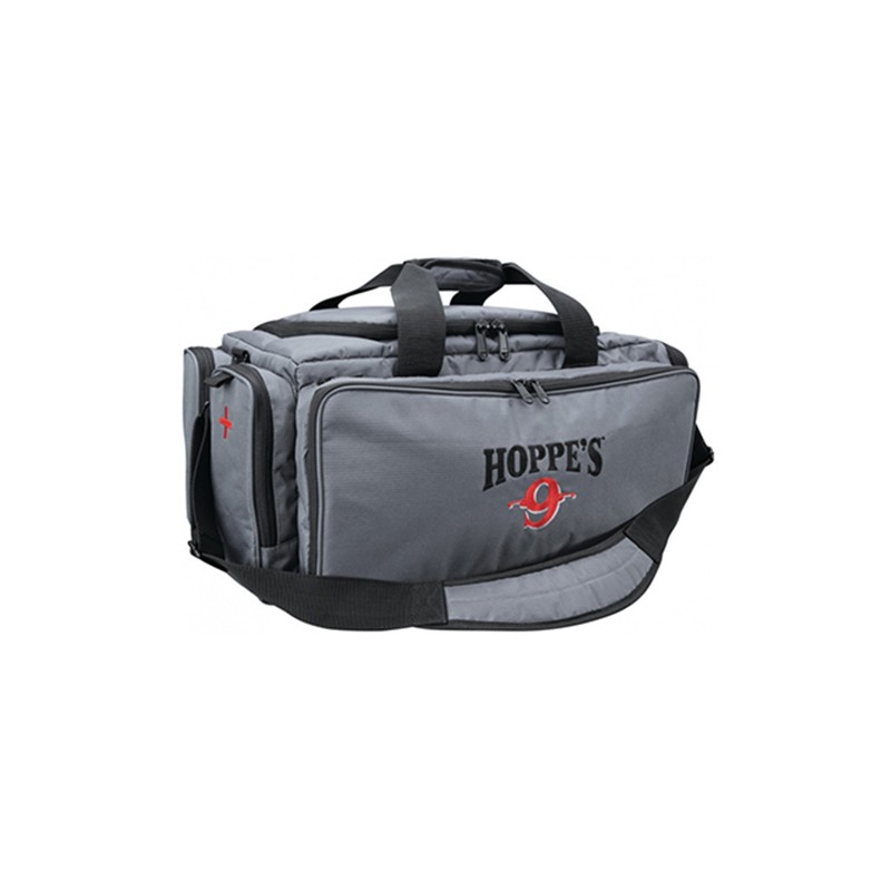 A trip to the range includes firearms, ammunition, targets, firearm cleaning supplies and safety equipment. Its a lot of gear to organize and Hoppes Range Bags can hold it all. The bags come in three sizes, and include a handgun strap for safe and secure firearm transport. Each bag has multiple pockets for storing every necessity and accessory. Theyre made from sturdy 600 Denier Ripstop polyester, a material that resists cuts and tears. When its time to go shooting, Hoppes Range Bags will be ready to go, time after time.