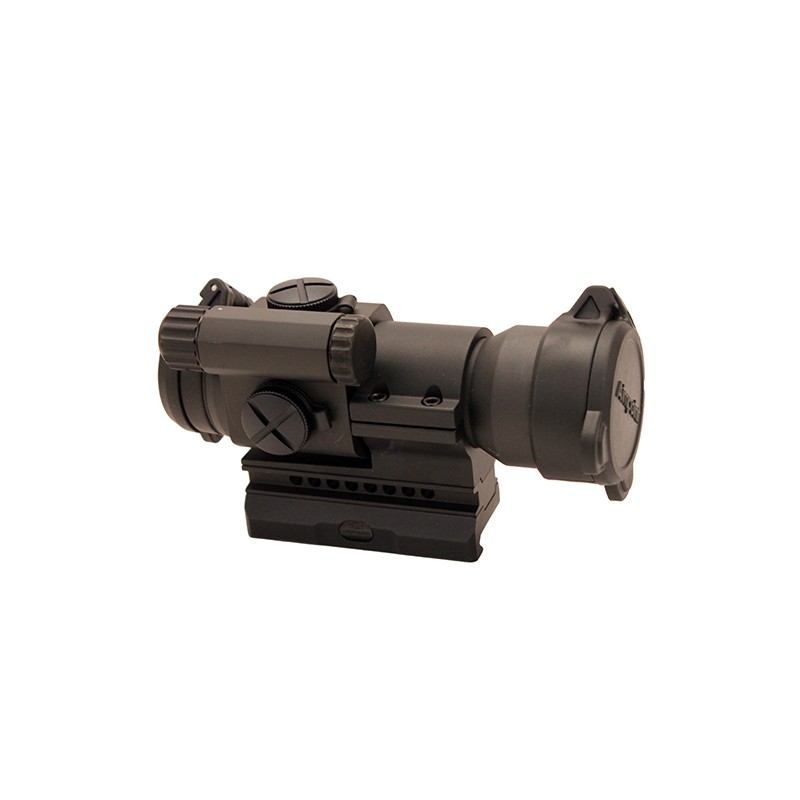 Flip covers are included to further protect the lenses, and a transparent rear lens cover is utilized allowing the user to engage a target with the lens covers closed in a emergency situation. A two Minute of Angle (2 MOA) red dot is utilized to allow maximum accuracy at all distances and under all environmental conditions.