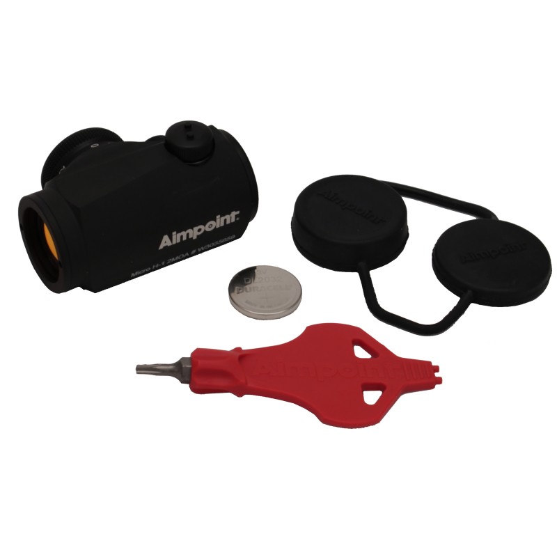 Aimpoint Micro H-1 (2 MOA) Red Dot Sight with No Mount Micro H-1 - Designed with the hunter in mind, these sights are the lightest red dot sights tough enough to bear the Aimpoint name. Small enough to be used anywhere that you cold put iron sights, these sights can be used on any type of firearm or archery equipment. A lightweight rifle with an H1 Micro mounted on it remains a lightweight rifle! A hunting revolver with an H1 Micro installed remains as easy to carry as