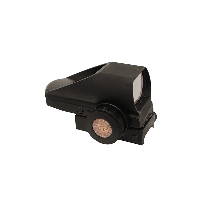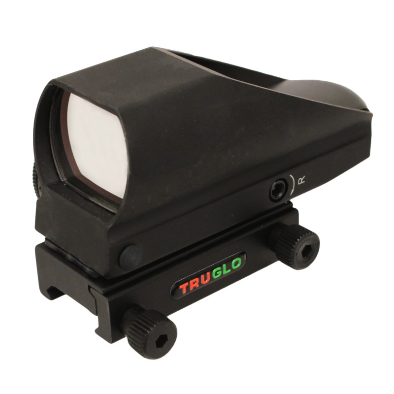The Single Reticle optic from TRUGLO is lightweight, waterproof, and offers a wide field of view with unlimited eye relief. It features multi coated lenses, 5 MOA dot reticle, 2 reticle colors (red and green), and integral Weaver style mount. Requires a single CR2032 lithium battery included.