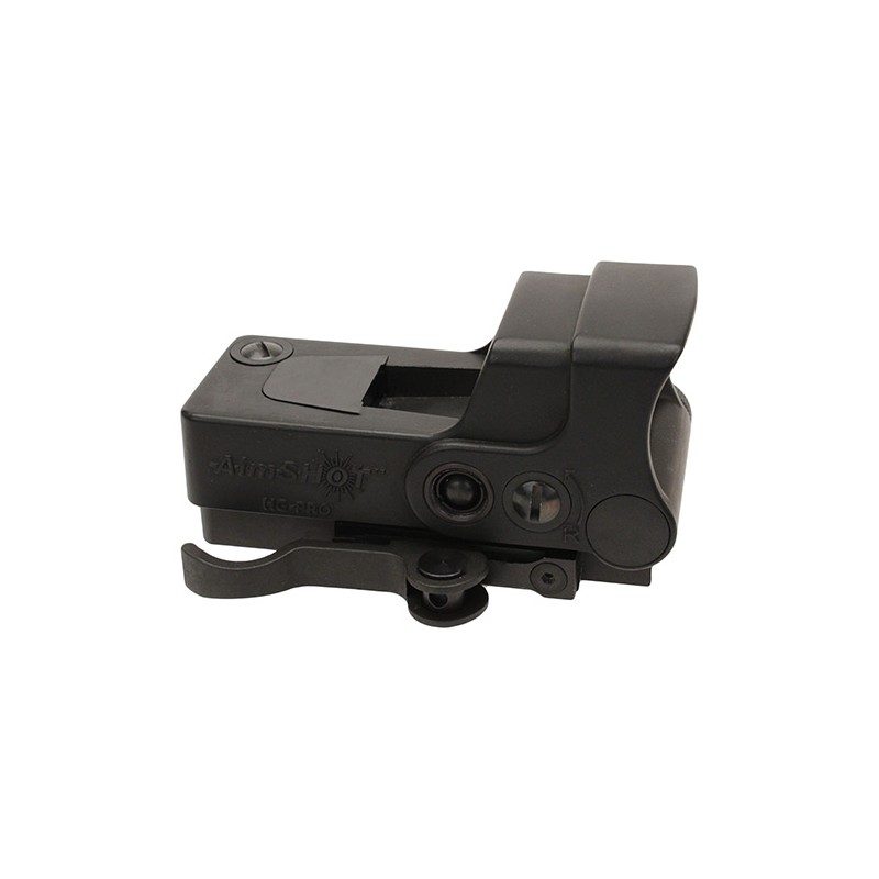 Built to military specs but priced for a civilian budget, the AimShot HG-Pro Reflex Sight is the pinnacle of tough and durable reflex sight technology. Built to withstand image any environment, the AimShot HG-Pro Red Dot Sight is crafted from top-quality 6061 T6 aircraft-grade aluminum, and is waterproof to up to 30 meters. This Aimshot red dot sight features an integrated rail mount with a quick release lever for easy installation and removal on any Picatinny or Weaver rail system. This Red Dot Sight by AimShot provides full windage and elevation adjustments and nine levels of brightness adjustment including a setting for use with night vision equipment. The Aimshot HG Pro Red Dot Sight has a large, 34mm coated reflex lens that is parallax-free, and allows for rapid target aquisition. The sight is powered by a single CR123 battery with an operational life of over 2500 hours.