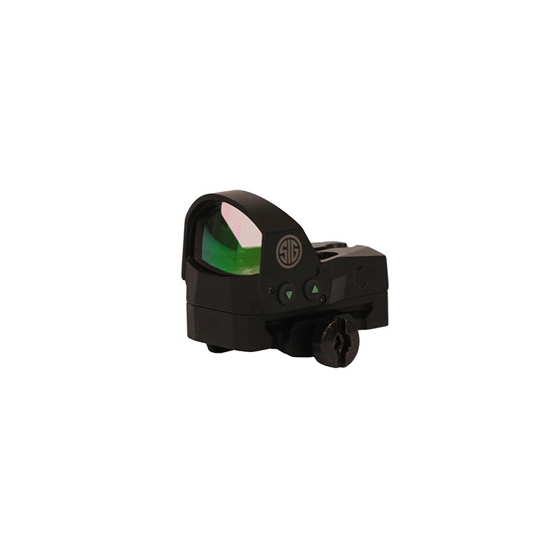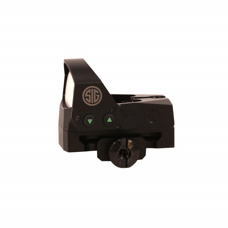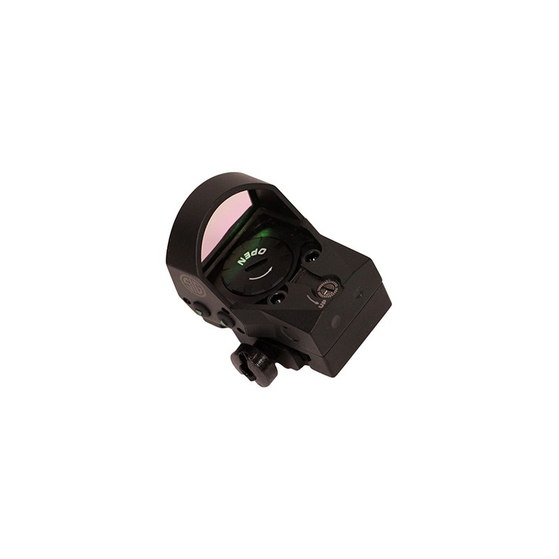 When the action is fast, target acquisition and accuracy are paramount. The miniature, open reflex ROMEO1 sight withstands the punishment of deployment while maintaining a confident zero. TruHold twin adjustment springs provide a lock-less zeroing system that is on-target shot after shot. Designed to fit the most popular pistols, or you can mount it low and co-witness your iron sights on a SIG SAUER pistol with a custom-machined slide. CNC-machined from a solid billet of Magnesium for lightweight strength. The molded aspherical lens is bright and distortion free, and the red-notch coating ensures a brilliant red dot. Manual brightness controls with MOTAC (Motion Activated Illumination) system remembers your last setting after powering off. Powered by a top-loading battery so you never have to lose your zero.