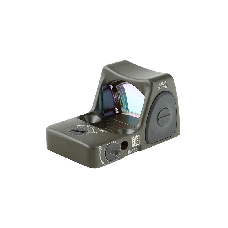 Developed to improve precision and accuracy with any style or caliber of weapon, the Trijicon RMR (Ruggedized Miniature Reflex) Type 2 is designed to be as durable as the legendary ACOG. The RM06 is an LED sight powered by a standard CR2032 battery. Housed in rugged forged aluminum, the RMR Type 2 is extremely tough yet lightweight. The easy-to-use adjusters with audible clicks allow for quick windage and elevation adjustments.