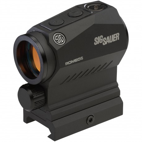 ROMEO5 compact red dot sights provide civilians and armed professionals a robust 1x aiming solution for any situation. The sights are parallax-free so point-of-aim and point-of-impact remain the same. Unlimited eye-relief allows you to acquire the aiming point and the target regardless of the position of your eye behind the sight. The readily available CR2032 battery is side-loading, allowing for quick battery replacement (featuring 5,000 hours or more of life). Dependable waterproof (IPX-7 rated for complete water immersion up to 1 atmosphere) and fog-proof performance.