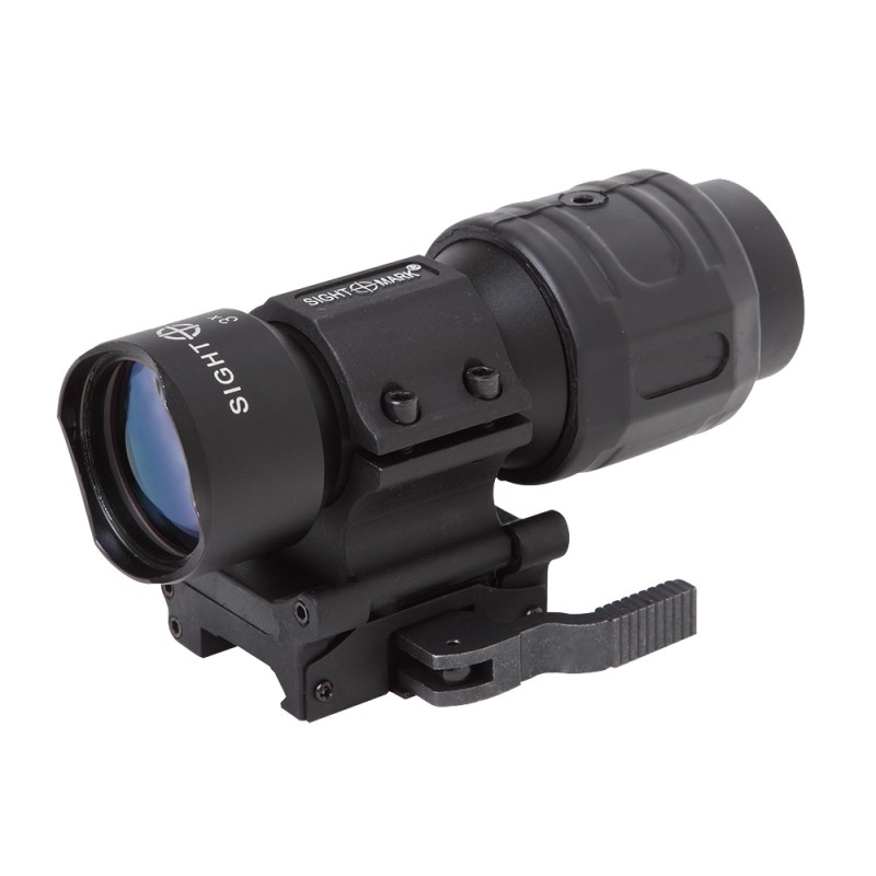 The Sightmark 3x Tactical Magnifier Slide-to-Side increases magnification of accompanying sights for longer engagement range and improved target recognition. The slide-to-side mount provides rapid transition between weapon's optical systems while it's quick detach mount allows for easy on/off application.