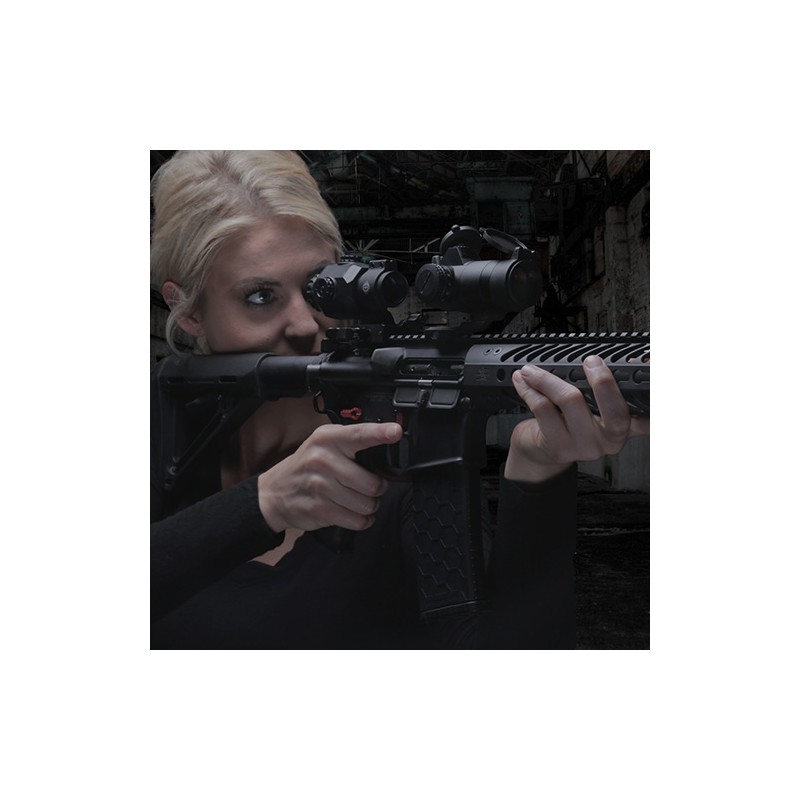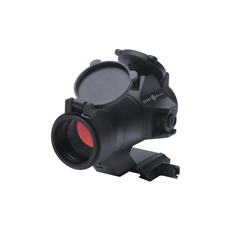 The innovative and improved Element 1x30 from Sightmark is a 2 MOA red dot sight, perfect for both-eyes-open shooting on AR rifles and shotguns. The Element features a practical clamp mount, reducing bulk and creating a sleek, streamlined design. Perhaps the most useful of all the Elements features is the adjustment caps; the Elements windage/elevation caps can be flipped and used as tools for making adjustments. The design of the sight also naturally protects these adjustment caps with raised edges. A rugged and compact aluminum alloy housing keeps the Element 1 shorter than the competition and provides increased durability in the field. This versatile red dot is night vision compatible and works in conjunction with magnifiers to help shooters at further distances. Waterproof up to 3 ft. and shockproof up to 3' on concrete, the Element provides anywhere from 100-15,000 hours of battery life from one CR2032 depending on which brightness setting is being used. The Element 1x30 Red Dot includes flip-up lens covers, battery and manual.
