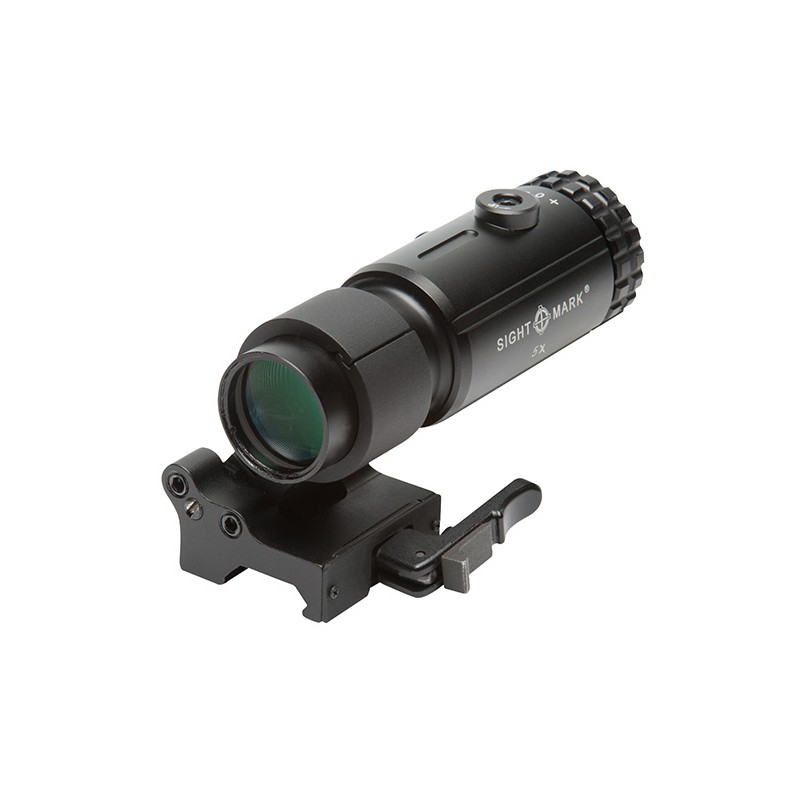 Built for shooting versatility, the Sightmark T-5 is a magnifier that mounts behind a reflex sight or red dot and provides an absolute co-witness. Instantly change the magnification of your close-range optic from 1x to 5x by using the T-5s flip-to-side mount. The magnifiers streamlined, low drag design prevents it from snagging on clothing and equipment and makes the T-5 .7 shorter than the magnifier its replacing. Ideal for stretching your AR engagements out to 200 yards, an included LQD mount allows for rapid attaching/detaching in intense shooting situations. The T-5s aluminum construction is shockproof up to .308 caliber rifles and provides IP55 water resistant protection. Brightness and resolution are improved from fully multi-coated optics and external windage and elevation adjustments help shooters align the reticle of their red dot/reflex sight to the center of the magnifiers point of view. The Sightmark T-5 includes flip-to-side LQD mount, adjustment tools and manual.