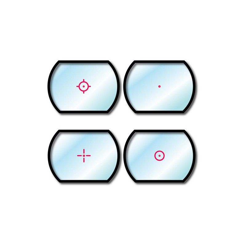 - Four reticle patterns: Circle-Dot-Cross Reticle, 3 MOA Dot Reticle, Cross-Dot Reticle, Circle-Dot Reticle