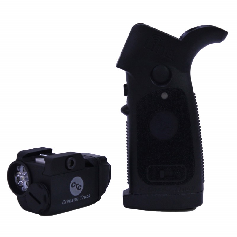 LiNQ combines a Green Laser Sight and 300 Lumen LED White Light with Instinctive Activation for AR-Type Modern Sporting Rifles (AR-15, AR-10, M4, M16, HK416). Utilizing a secure, individual wireless connection, LiNQ offers complete wireless control of the laser and light module. The replacement grip is ergonomically designed for quick activation and mode changes, eliminating the need to reach for the rifle's forend to operate. The green laser sight, coupled with a powerful tactical light, offers high visibility in all lighting conditions, making LiNQ the ultimate illumination and targeting solution.
