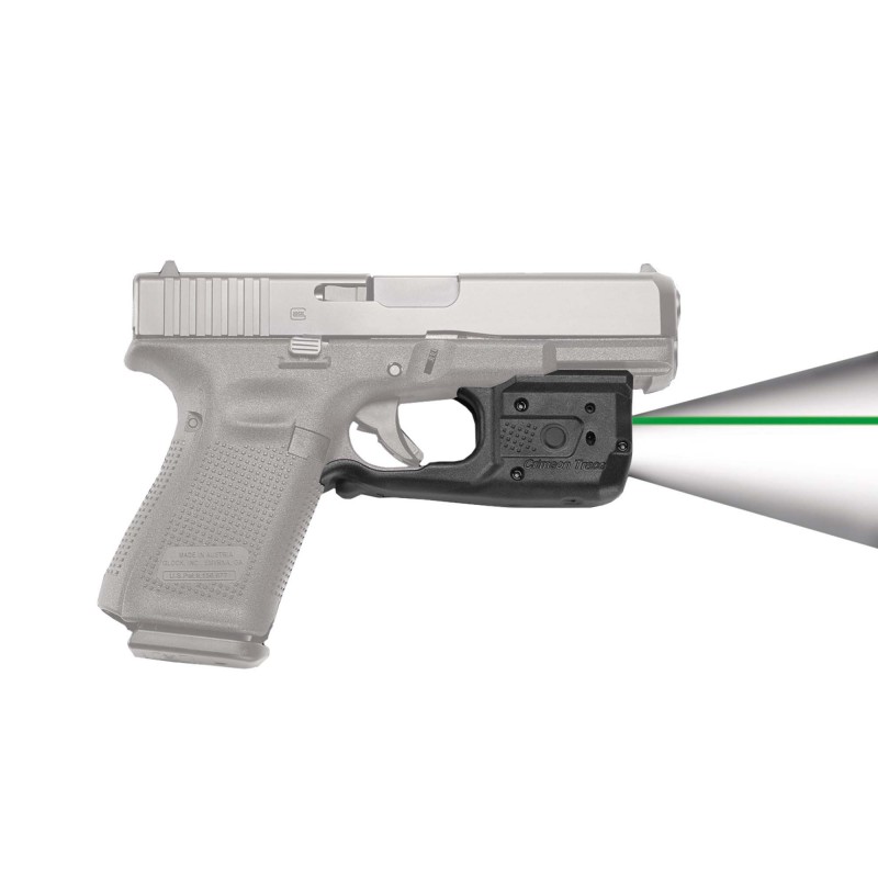 LL-807G Laserguard Pro for GLOCK Full-Size and Compact pistols is a powerful green laser sight and 150 Lumen LED white light in a single compact unit. This illumination and targeting product is activated with Crimson Trace's famed Instinctive Activation, which activates the unit via a front activation button when the pistol is held in a normal firing grip. The LL-807G features four modes of operation (see below), a Master On/Off Switch, is completely user-installed in moments with no modifications to the gun frame and the laser is user-adjustable for windage and elevation. Offers 2 hours of battery with a single CR2 Lithium battery.