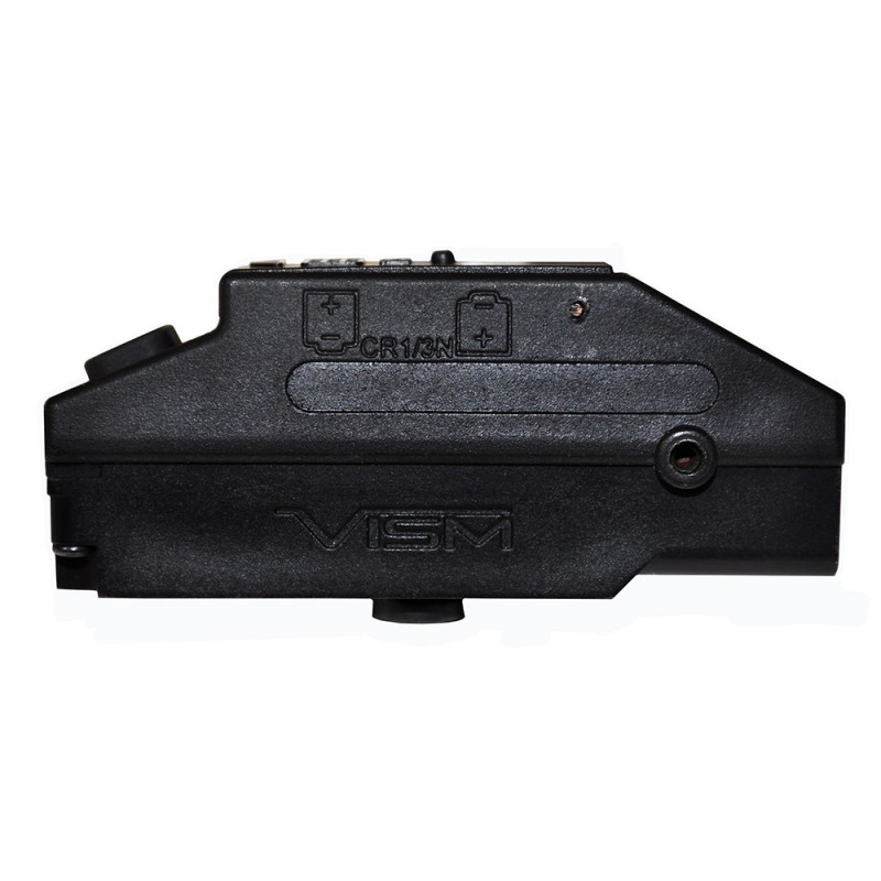 - Laser runs on two CR1/3N lithium batteries (included). Battery door locks in place, depress the center button and slide door a ¼" and lift door to access battery compartment