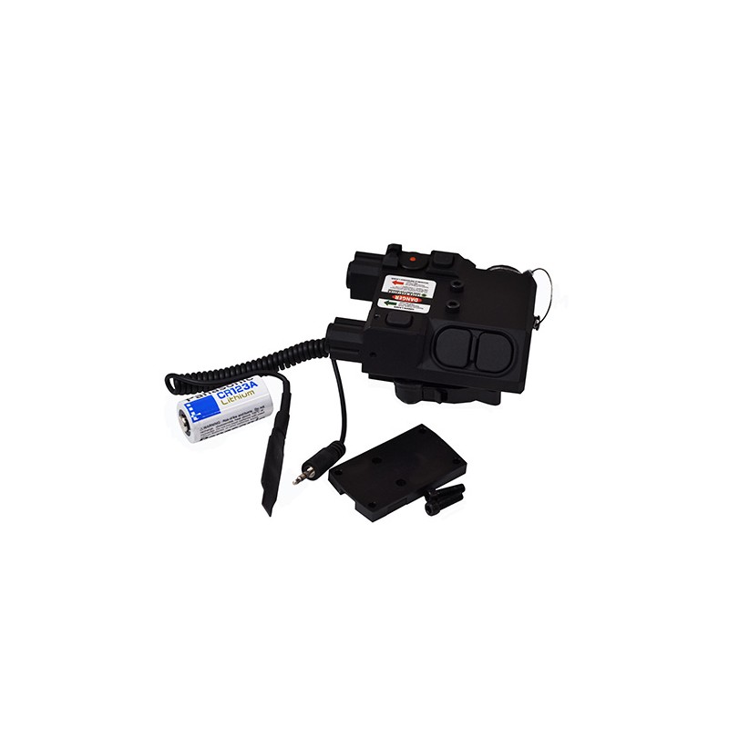 - Includes a two position remote pressure switch. The 3.5 mini jack plugs into the rear jack port of the Designator. The Green Laser and the IR Laser can be individually activated from the remote pressure switch. Class I laser