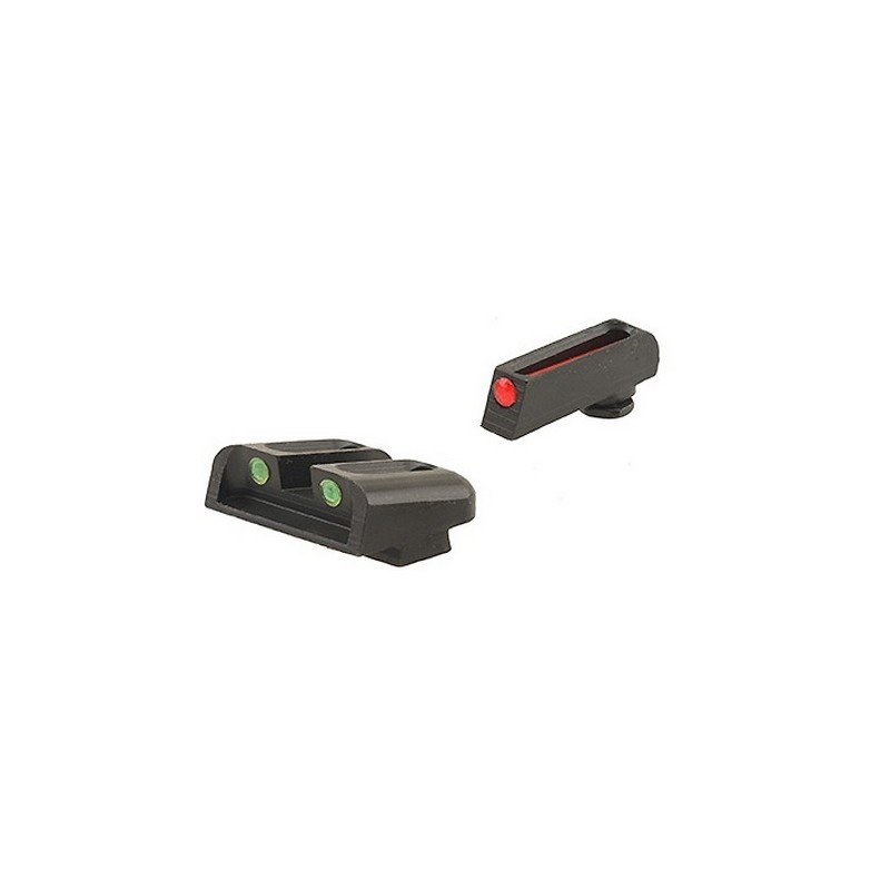 TruGlo Brite-Site Sight Set Glock 17, 17L, 19, 22, 23, 24, 26, 27, 33, 34, 35, 38, 39 Steel Fiber Optic Red Front, Green Rear. These high contrast fiber optic sights feature a 3 dot pattern with a single front dot and 2 rear dots. Fiber optic technology lets these lights gather ambient light and direct it toward the shooter's eyes, making the sights glow bright without the need for batteries. Perfect for all types of daylight shooting.