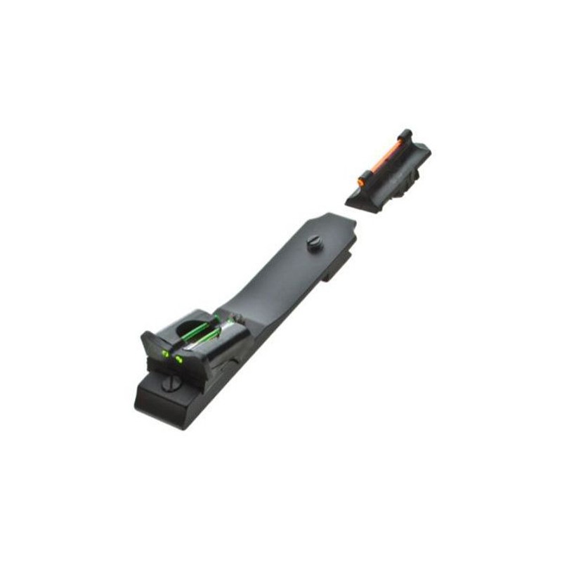easy to see fiber optic sights take deer hunting to a new level for the accuracy conscious deer hunter. In low-light