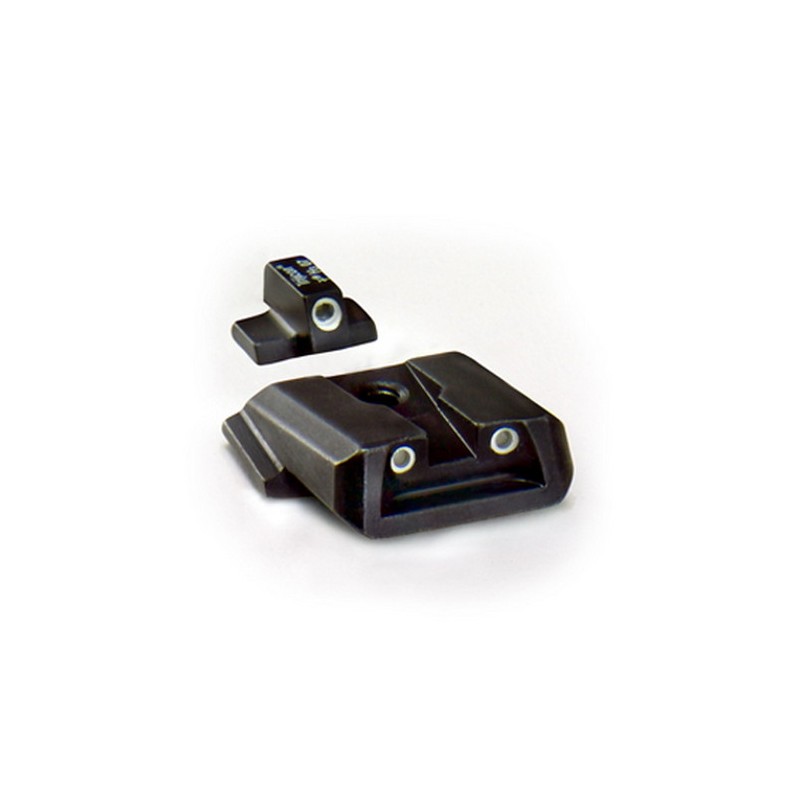 Trijicon Bright and Tough Night Sights are three-dot iron sights that increase night-fire shooting accuracy by as much as five times over conventional sights. Equally impressive, they do so with the same speed as instinctive shooting - and without the need for batteries. Housed in a metal body and cushioned within silicone rubber, Bright & Tough Night Sights feature a unique shock-resistant design. Each lamp is capped with a sapphire jewel to help evenly distribute the light while protecting the lamp from solvents and puncture. Contained within aluminum cylinders for additional protection, the lamps are mounted on silicone rubber cushions to withstand shock and heavy recoil. Green lamps are warranted for 12 years from the date of manufacture.