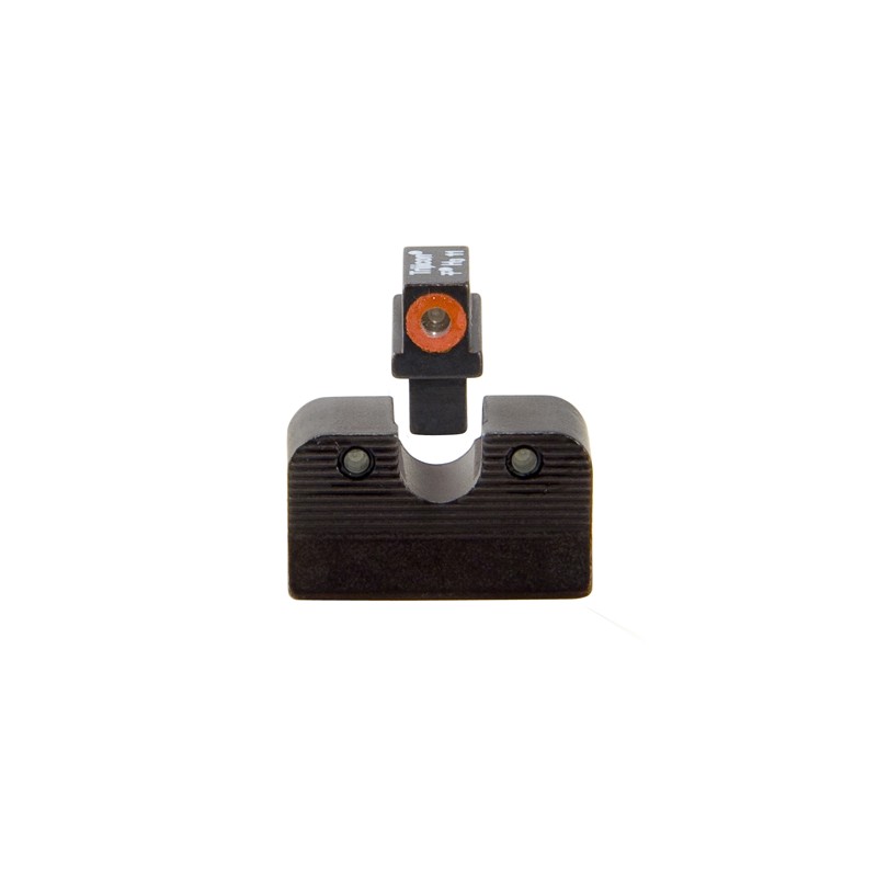 The three dot green tritium night sight sets front sight features a taller blade and an aiming point ringed in photo-luminescent paint while the rear sight is outlined in black and features a wider U-shaped notch. This unique configuration increases visibility and quickens front sight acquisition - even in transitional lighting. Additionally, the front surface of the rear sight is steeply hooked to assist in emergency one-handed slide operation.