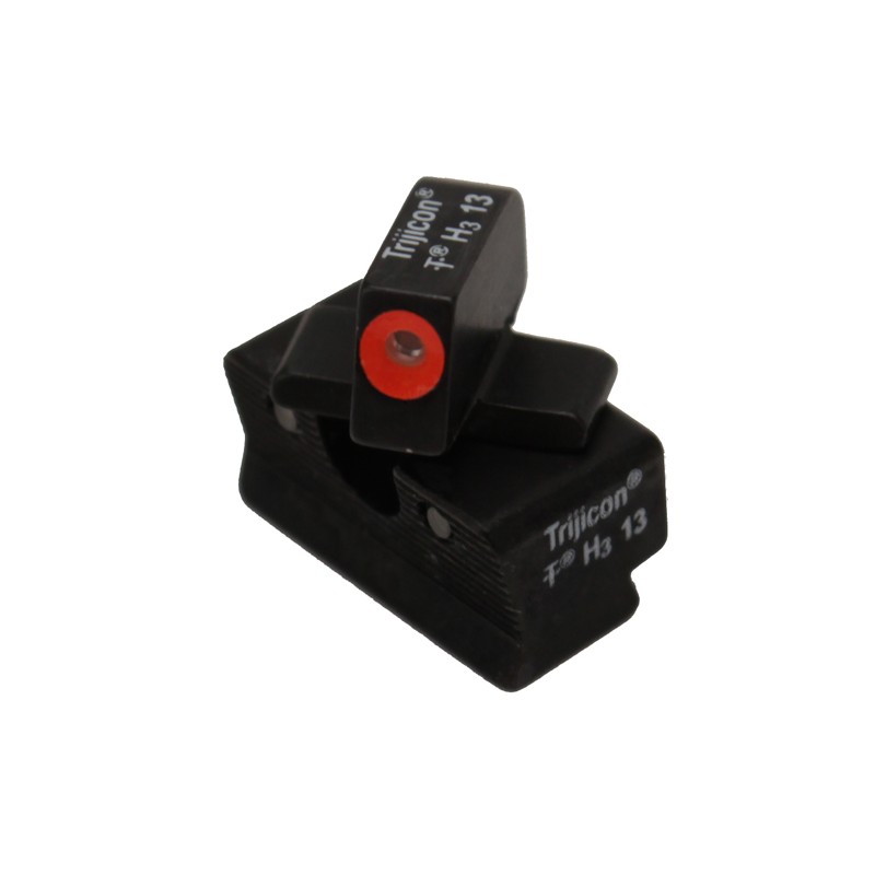 The three dot green tritium night sight set's front sight features a taller blade and an aiming point ringed in photoluminescent paint (orange) while the rear sight is outlined in black and features a wider U-shaped notch. This unique configuration increases visibility and quickens front sight acquisition - even in transitional lighting.