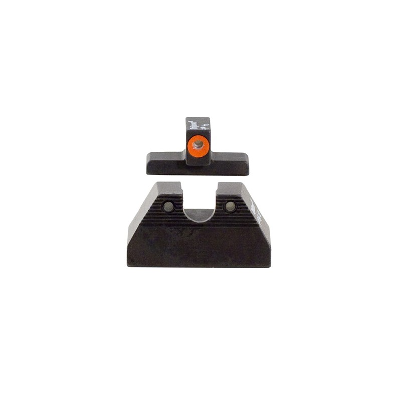 The three dot green tritium night sight sets front sight features a taller blade and an aiming point ringed in photoluminescent paint while the rear sight is outlined in black and features a wider U-shaped notch. This unique configuration increases visibility and quickens front sight acquisition - even in transitional lighting. Additionally, the front surface of the rear sight is steeply hooked to assist in emergency one-handed slide operation.