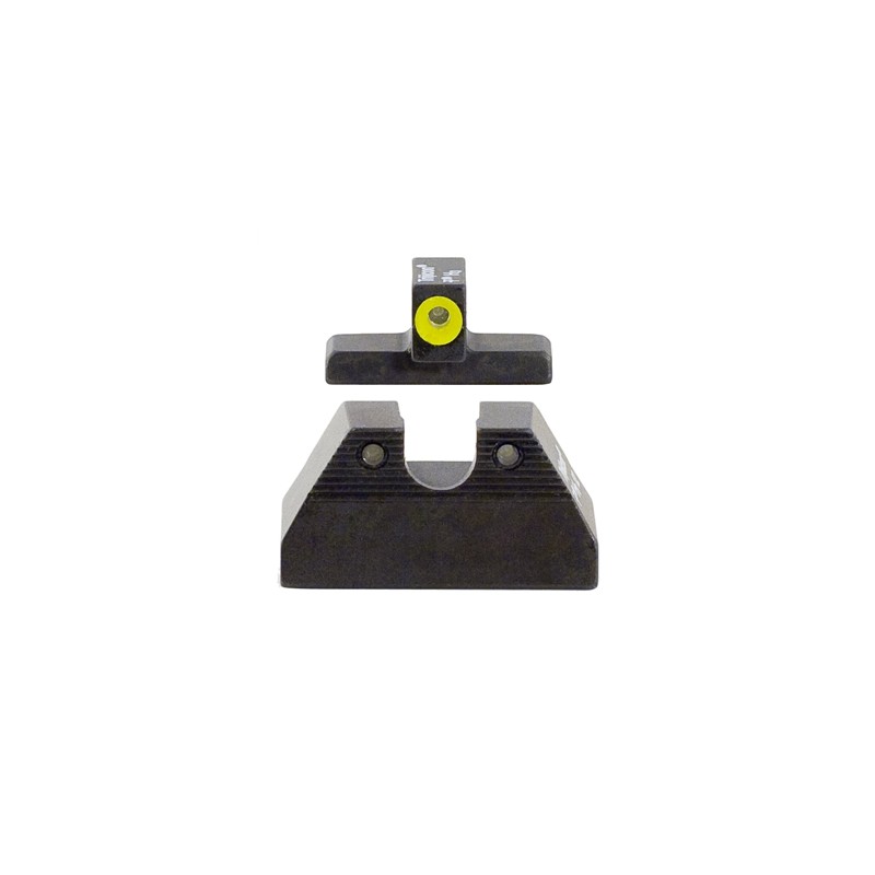 The three dot green tritium night sight sets front sight features a taller blade and an aiming point ringed in photoluminescent paint while the rear sight is outlined in black and features a wider U-shaped notch. This unique configuration increases visibility and quickens front sight acquisition - even in transitional lighting. Additionally, the front surface of the rear sight is steeply hooked to assist in emergency one-handed slide operation.