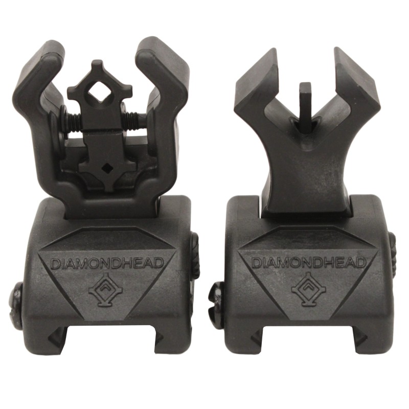 Diamondhead's Polymer Integrated Sighting System is designed for all AR15s and Modern Sporting Rifles. Front and Rear Sights both incorporate the Patented Diamond-shaped apertures and upper housings and are fitted with NiteBrite photoluminescent inserts.