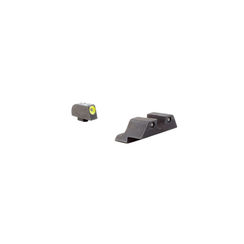The three dot green tritium night sight sets front sight features a taller blade and an aiming point ringed in photoluminescent paint while the rear sight is outlined in black and features a wider U-shaped notch. This unique configuration increases visibility and quickens front sight acquisition - even in transitional lighting. Additionally, the front surface of the rear sight is steeply hooked to assist in emergency one-handed slide operation.