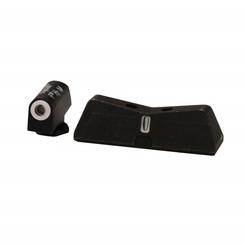The XS Sights DXT Standard Dot are defensive night sights for encounters under any light condition. The Express rear sight features vertical green tritium bar with a highly visible, white outline. The front sight has a large, easy-to-see white ring surrounding the tritium dot. Rounded, low profile design won't slow your draw and works with the majority of holsters on the market. Designed to directly replace the factory sights.