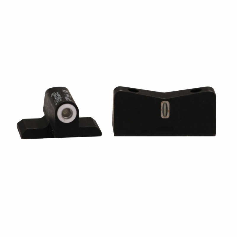 The XS Sights DXT Standard Dot are defensive night sights for encounters under any light condition. The Express rear sight features vertical green tritium bar with a highly visible, white outline. The front sight has a large, easy-to-see white ring surrounding the tritium dot. Rounded, low profile design won't slow your draw and works with the majority of holsters on the market. Designed to directly replace the factory sights.