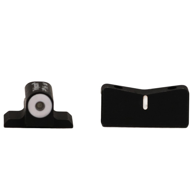 The XS Sights DXW Big Dot are defensive night sights for encounters under any light condition. The Express rear sight features a vertical white stripe at the base of the shallow V. The front sight has a large, easy-to-see white ring surrounding the tritium dot. Rounded, low profile design won't slow your draw and works with the majority of holsters on the market. Designed to directly replace the factory sights.