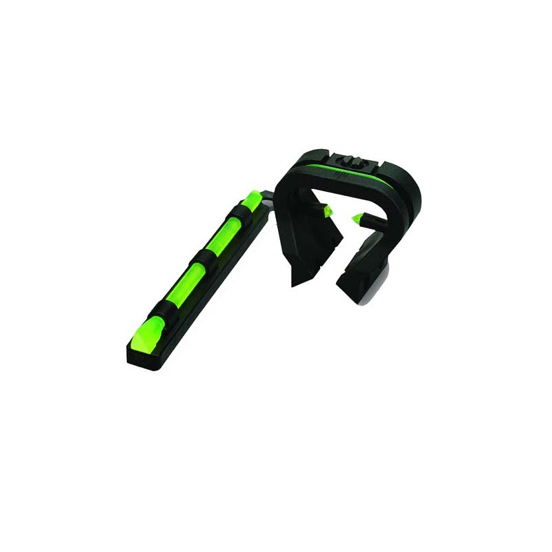 This is a front and rear shotgun sight set. It includes four green LitePipes, three triangular (in varied heights to adjust elevation), and one round.