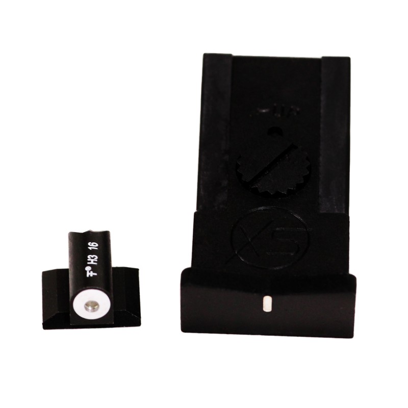 The XS Sights DXW Big Dot are defensive night sights for encounters under any light condition. The Express rear sight features a vertical white stripe at the base of the shallow V. The front sight has a large, easy-to-see white ring surrounding the tritium dot. Rounded, low profile design won't slow your draw and works with the majority of holsters on the market. Designed to directly replace the factory sights.
