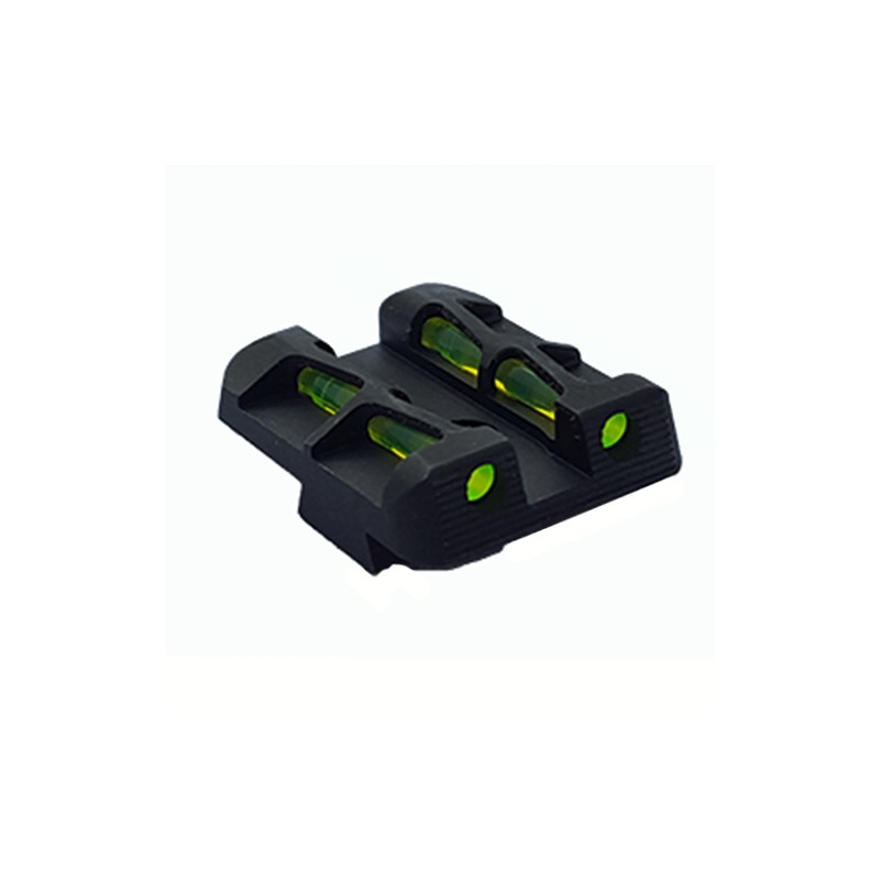 Rear sight for Sig Sauer P-Series. Litewave rear sight design allow interchangeable colors fits all P-Series Sig pistols, except the P-250. The sight's height is the same as the Sig #8. All steel construction includes Litepipes in red, green and black.