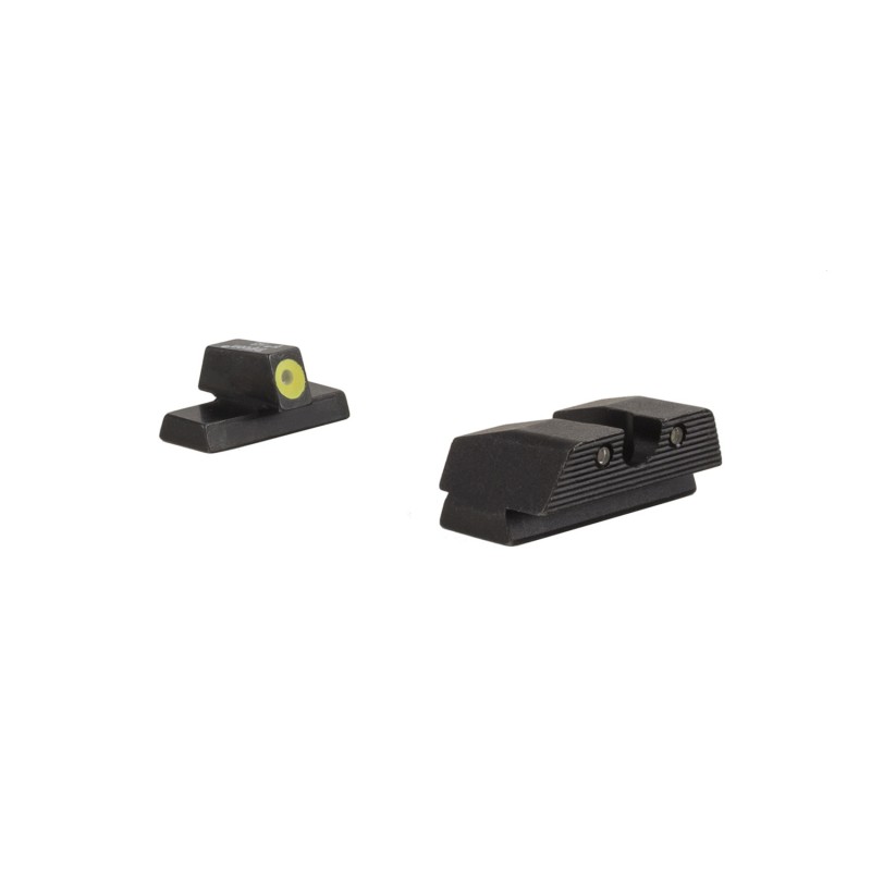 The three dot green tritium night sight sets front sight features a taller blade and an aiming point ringed in photoluminescent paint while the rear sight is outlined in black and features a wider U-shaped notch. This unique configuration increases visibility and quickens front sight acquisitioneven in transitional lighting.